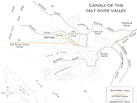canals being formed largely by cleaning out the Hohokam canals. The ancient ruins and canals were a source